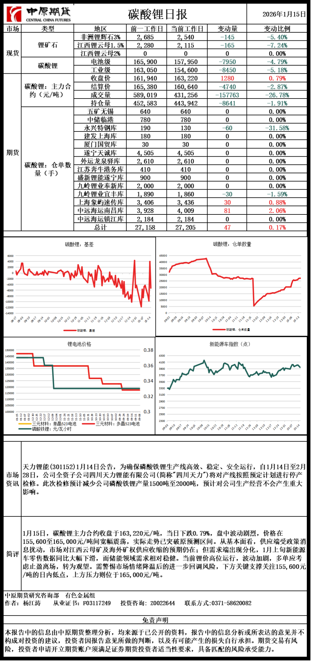 碳酸锂日报20260115
