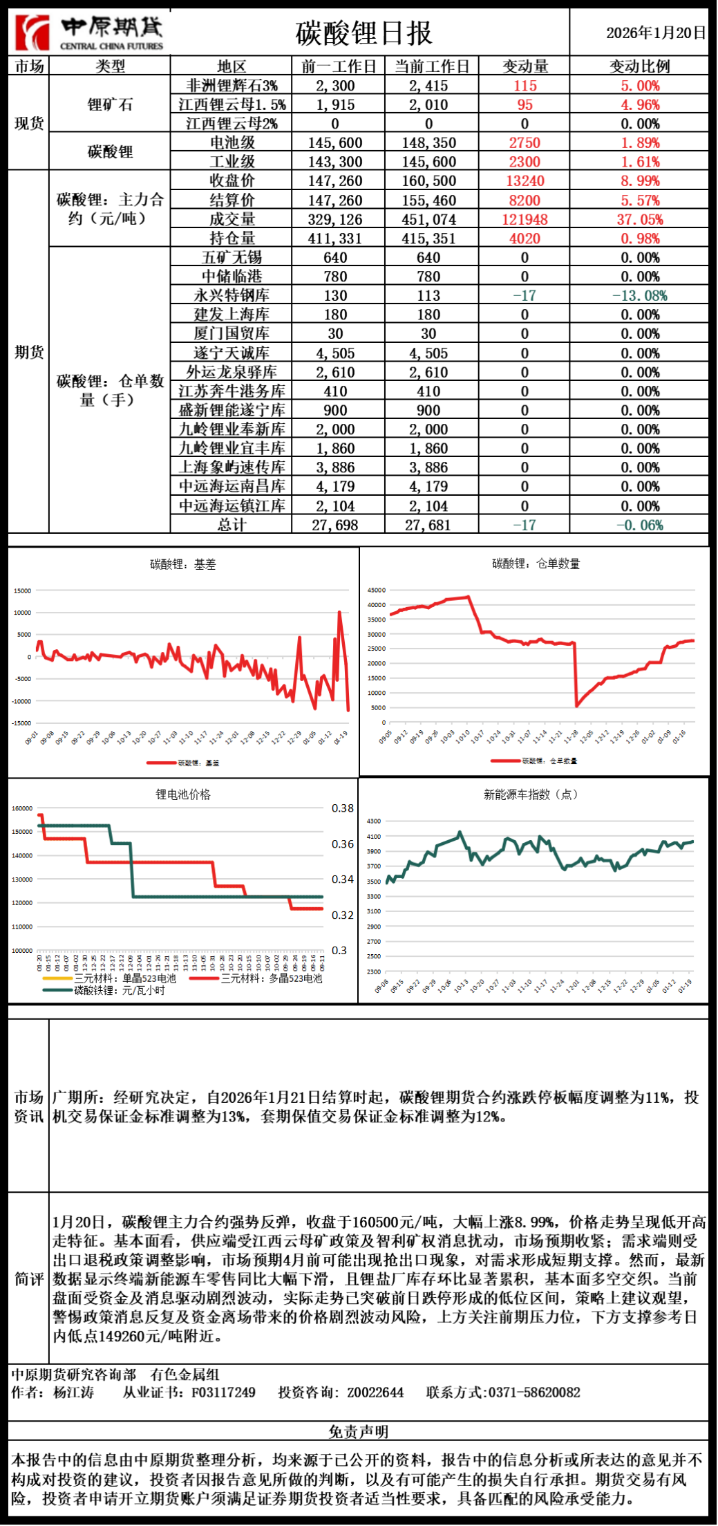 碳酸锂日报20260120