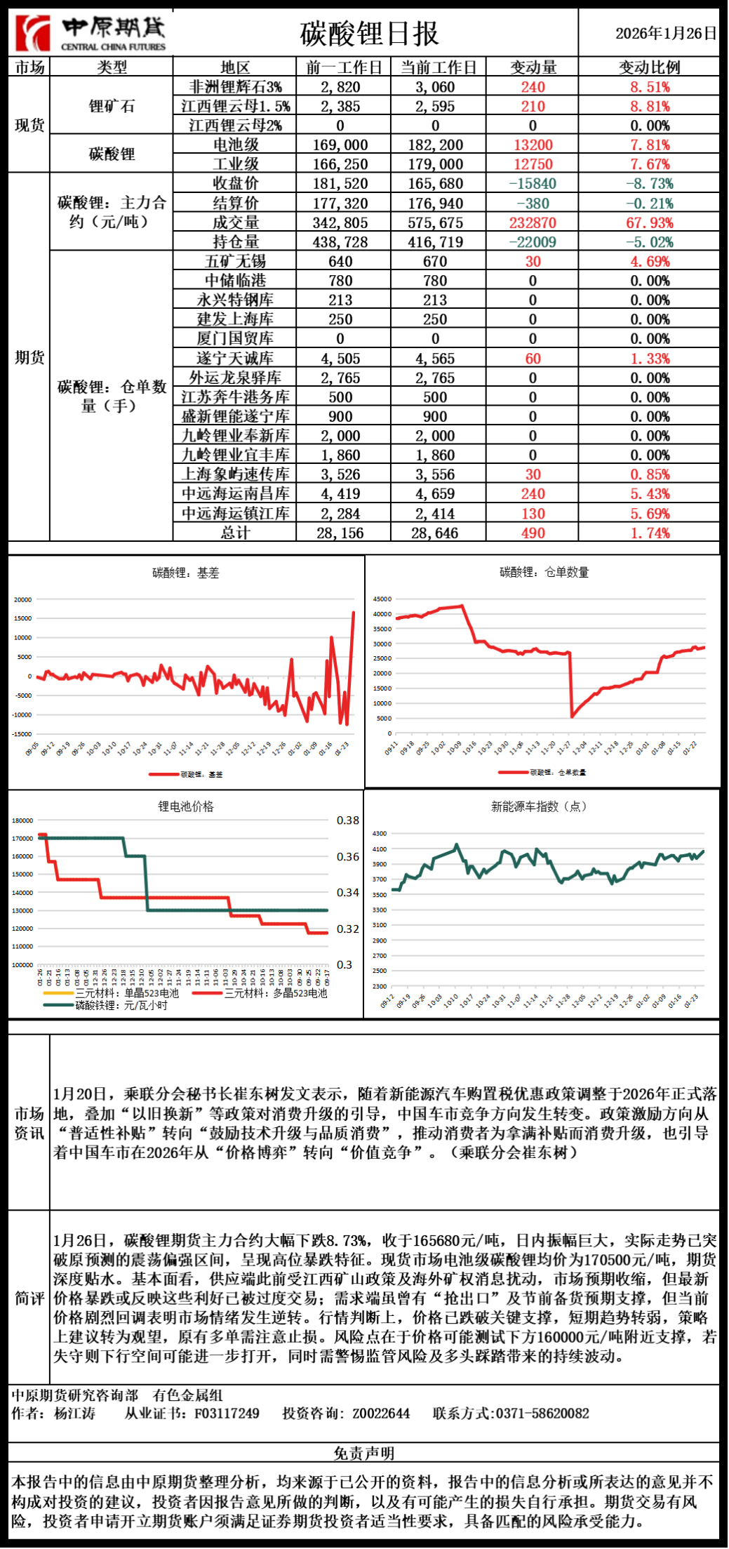 碳酸锂日报20260126