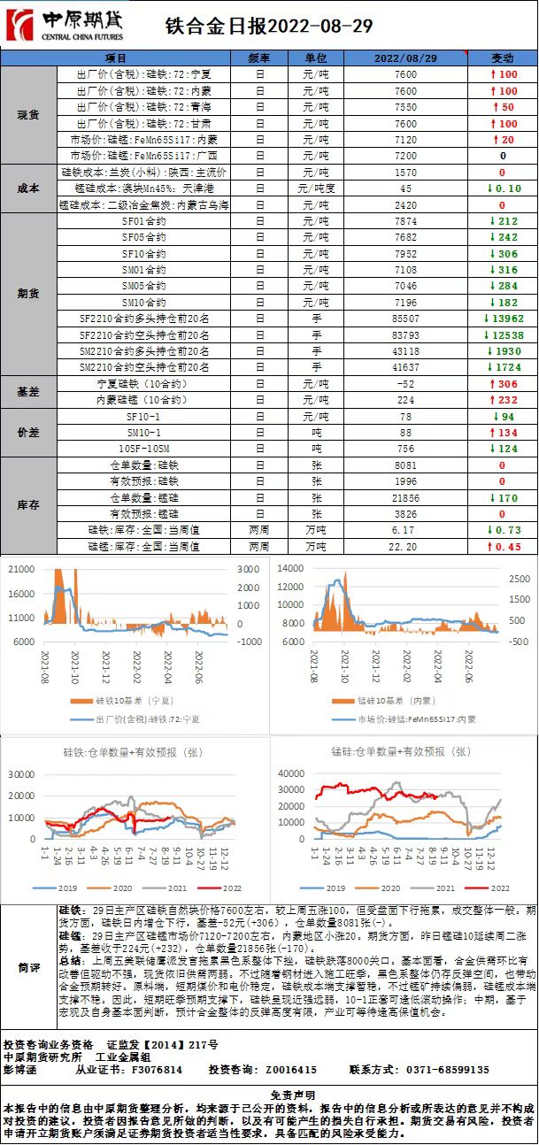 铁合金日报20220829