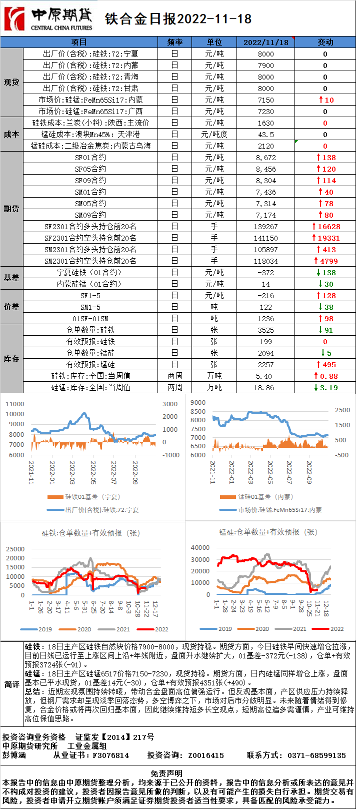 铁合金日报20221118