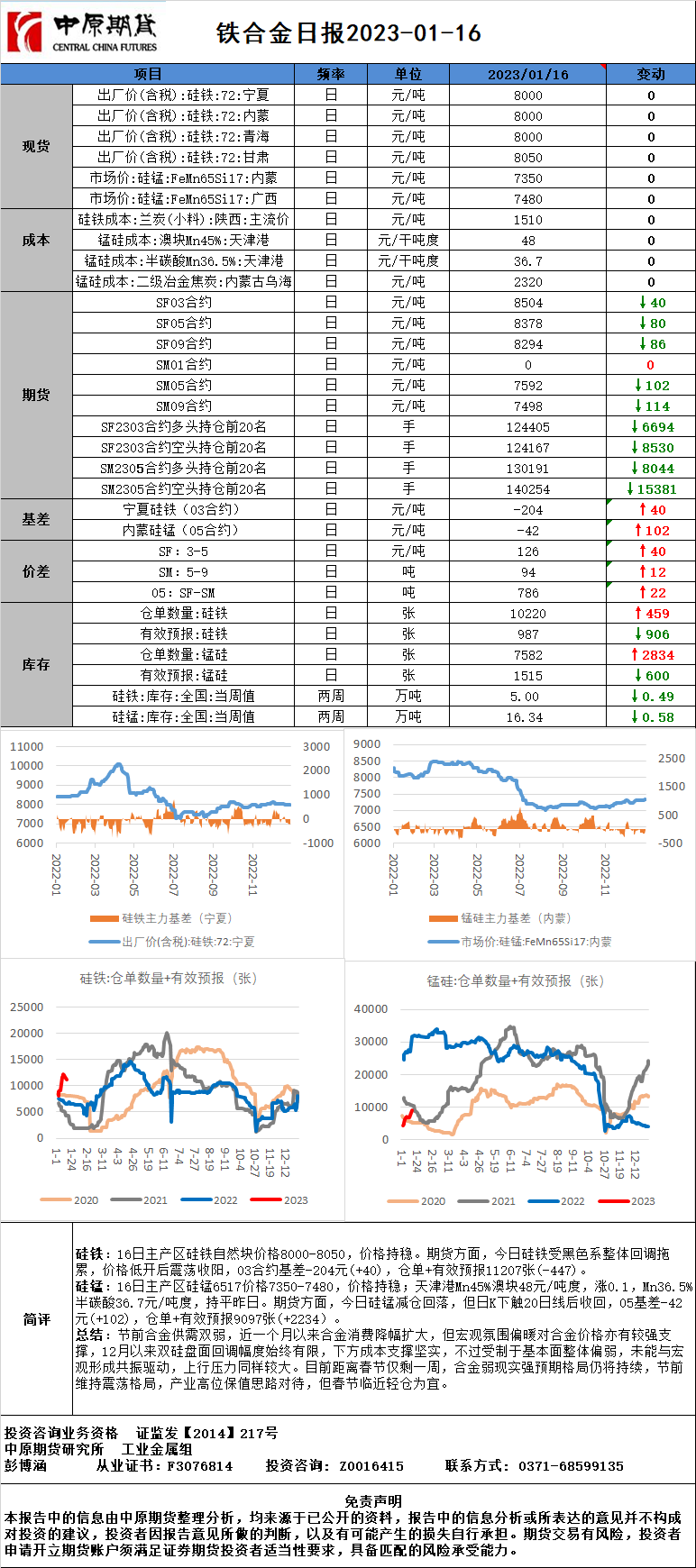 铁合金日报20230116