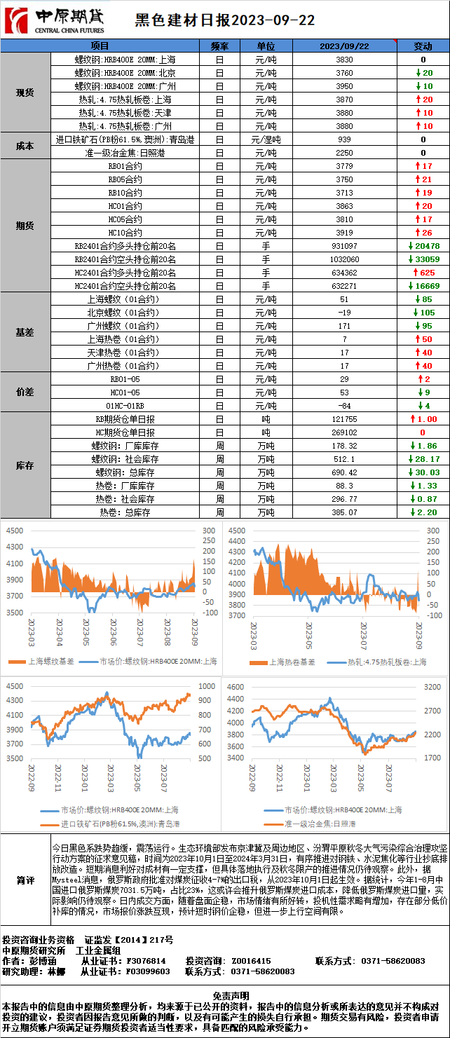 黑色建材日报20230922