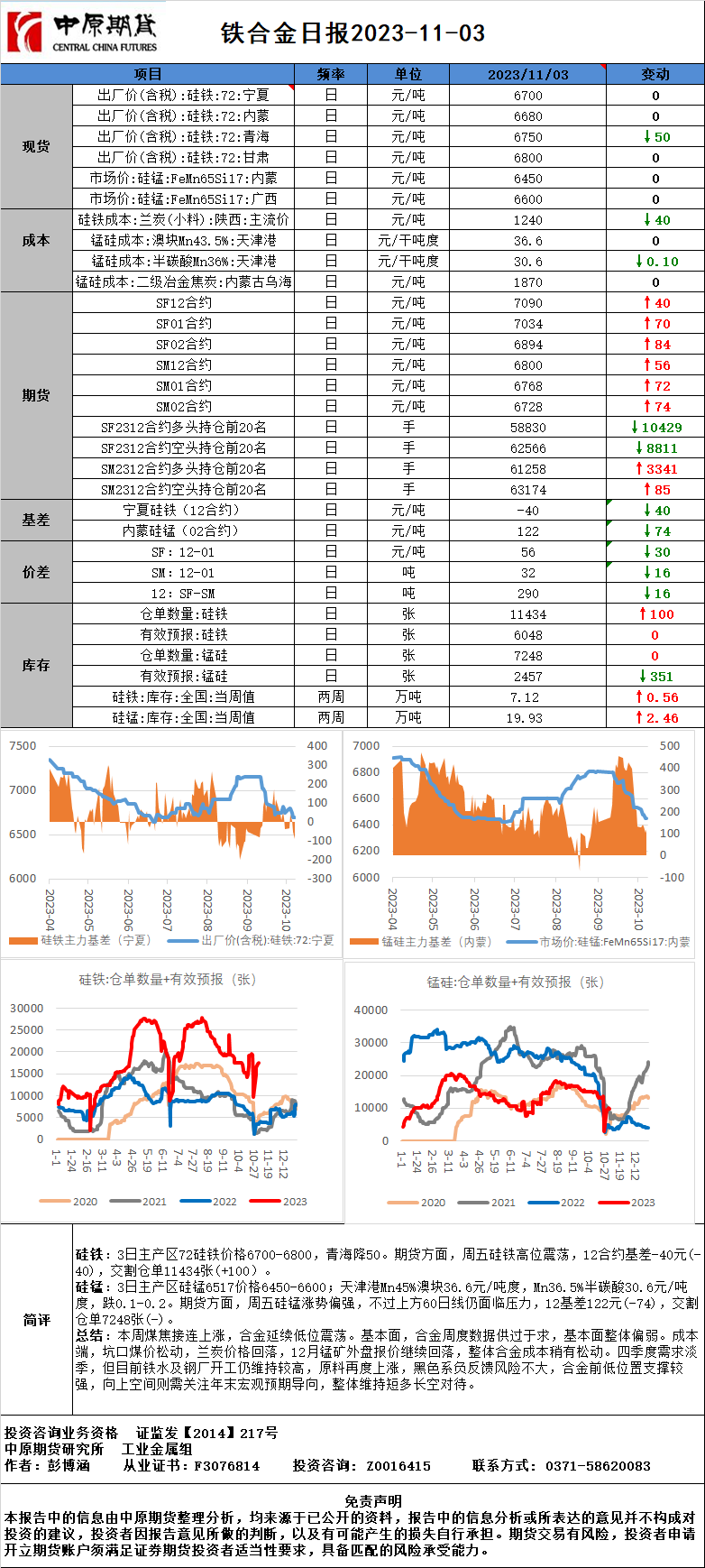 铁合金日报20231103