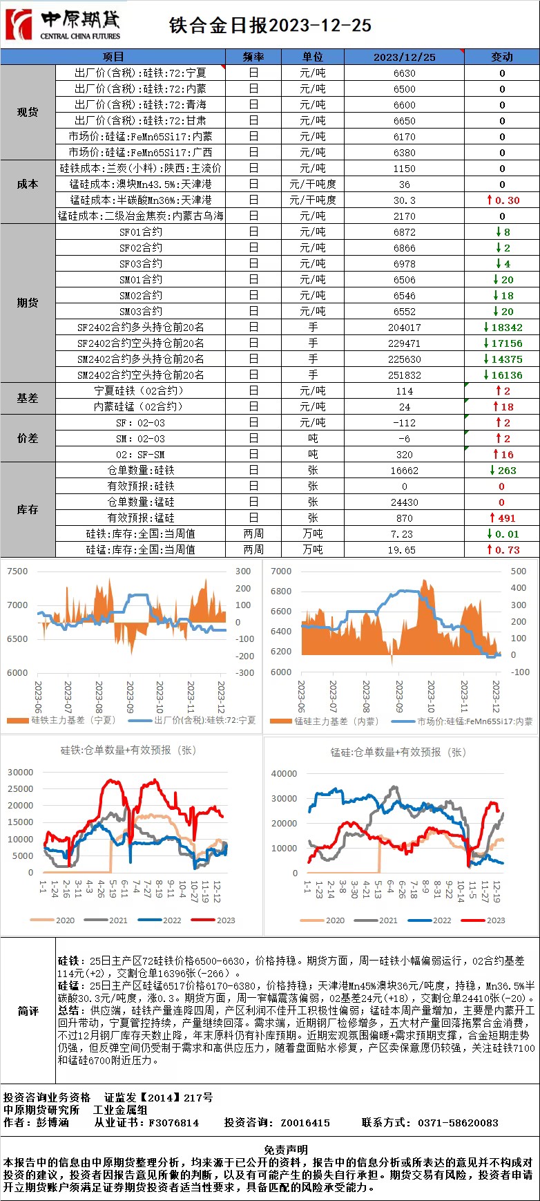 铁合金日报20231225