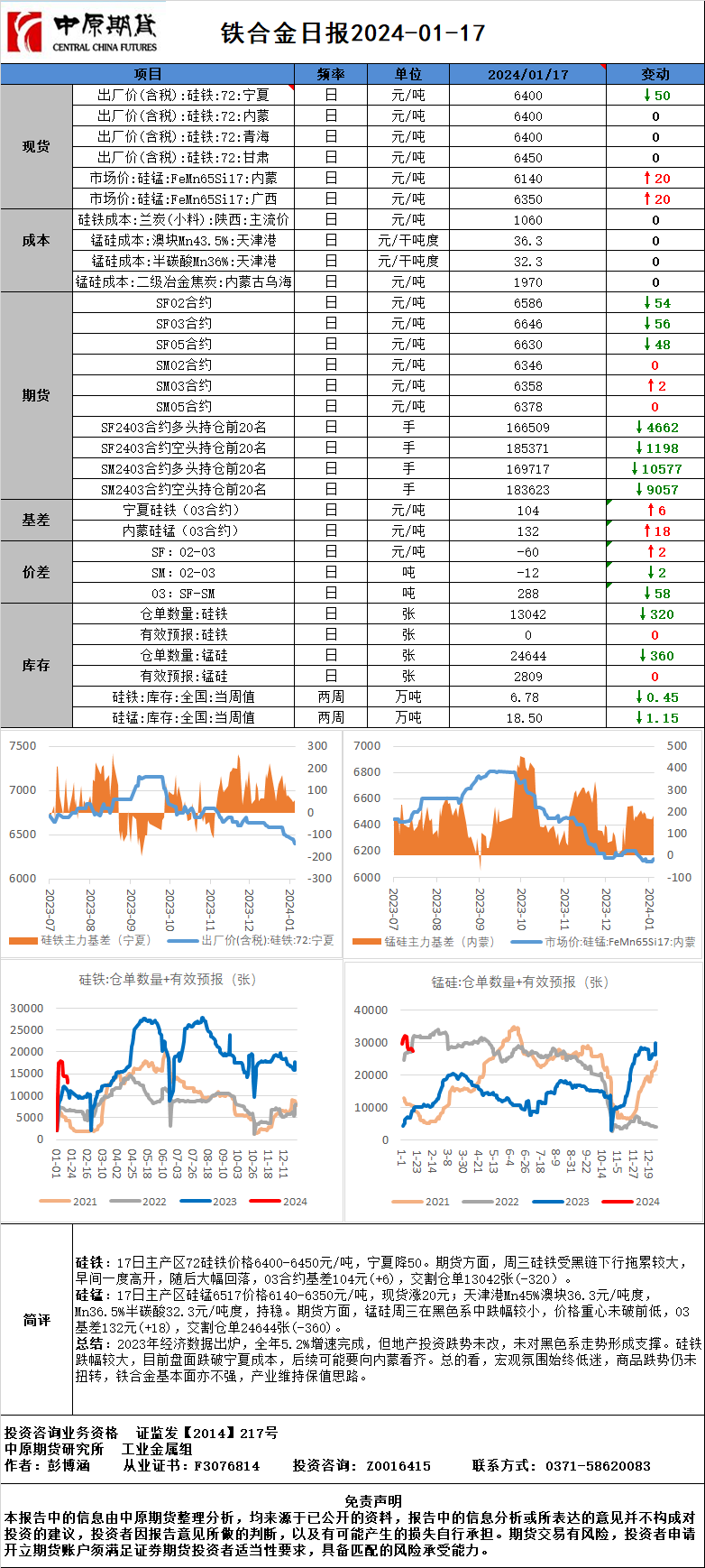 铁合金日报20240117
