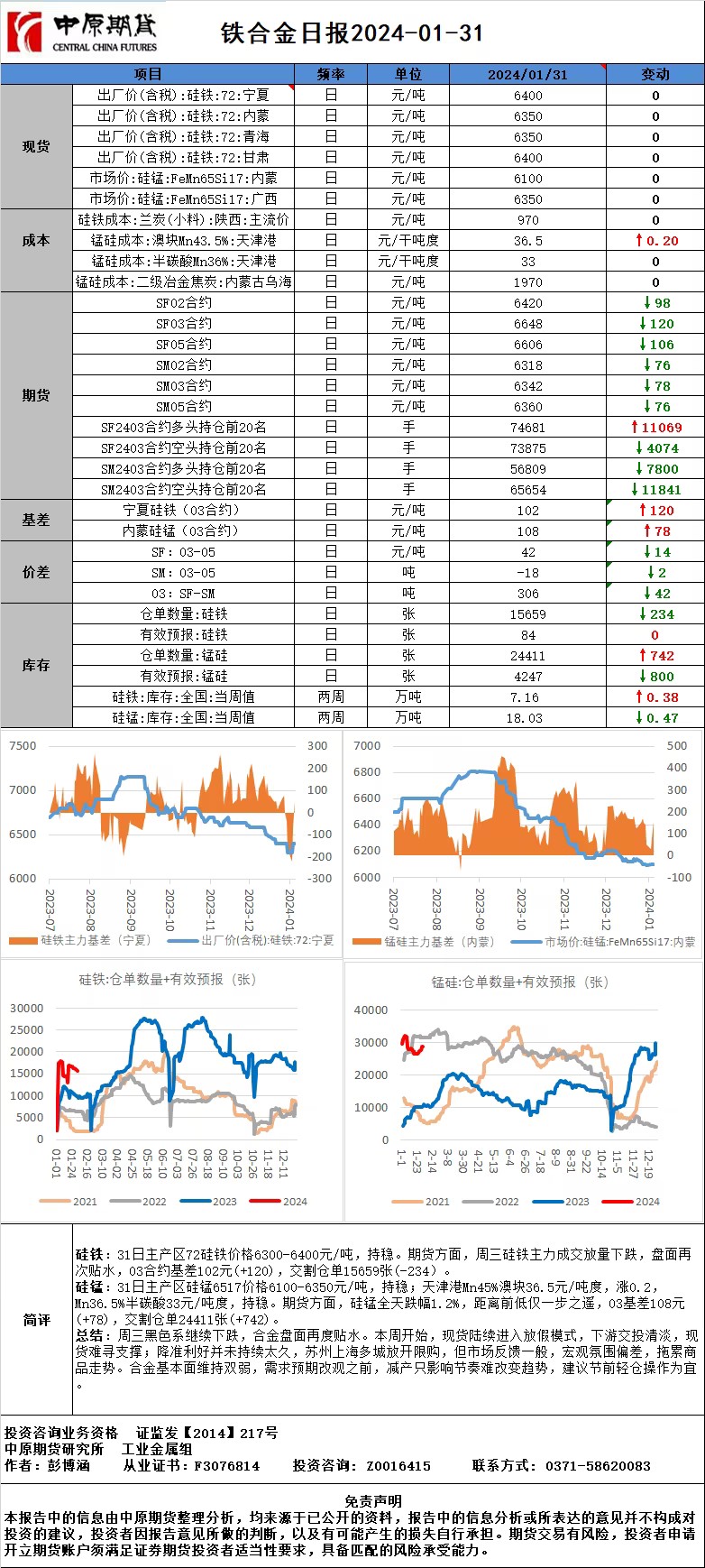 铁合金日报20240131
