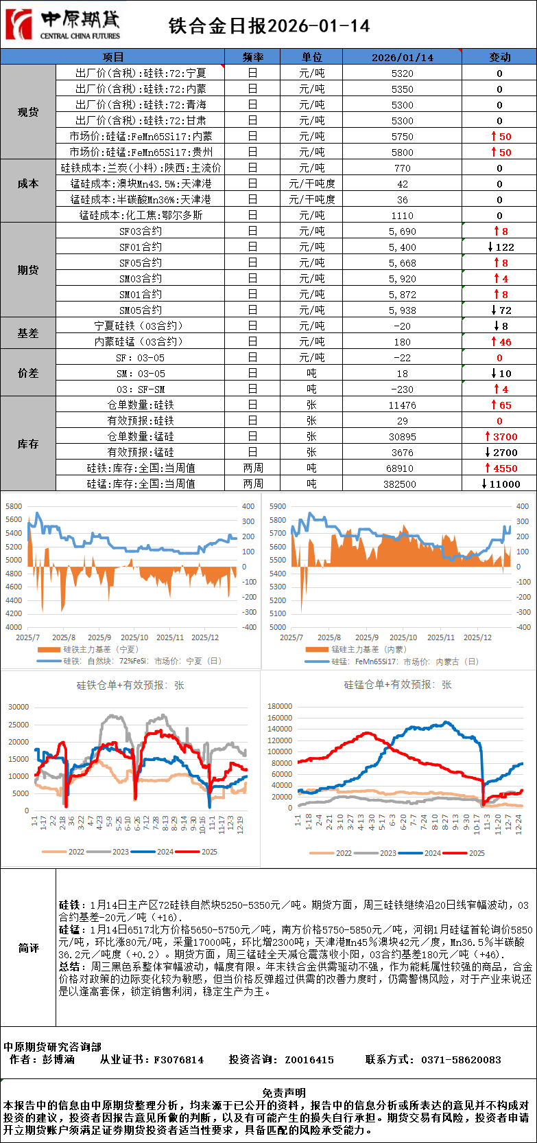 铁合金日报20260114
