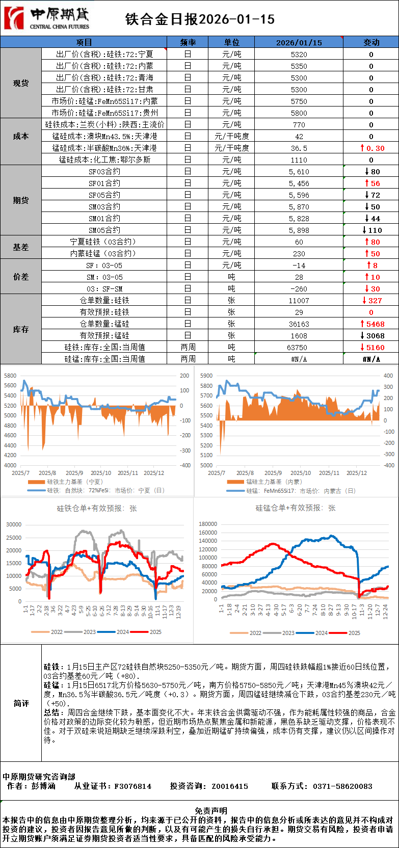 铁合金日报20260115