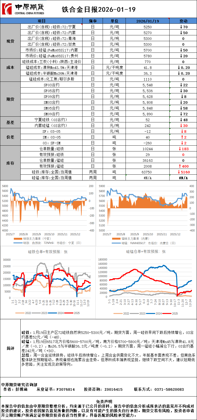 铁合金日报20260119