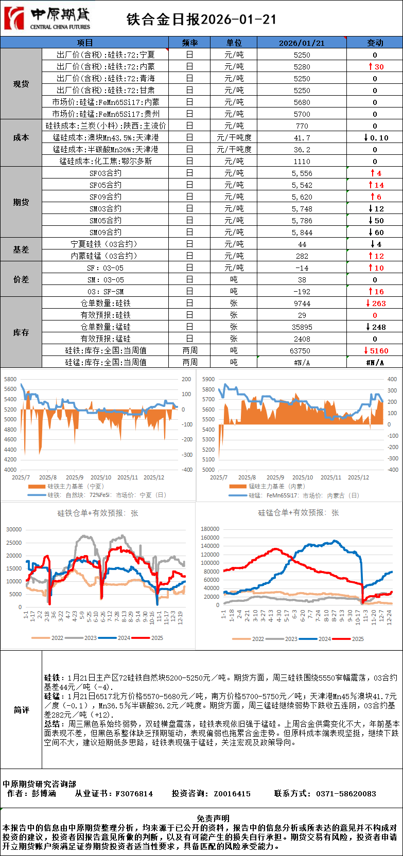 铁合金日报20260121