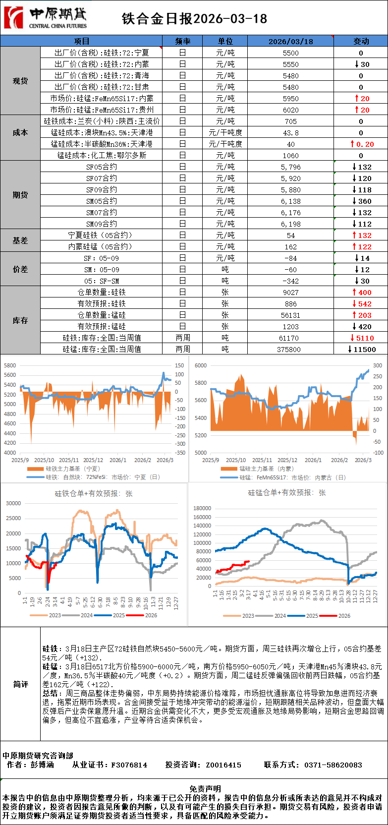 铁合金日报20260318