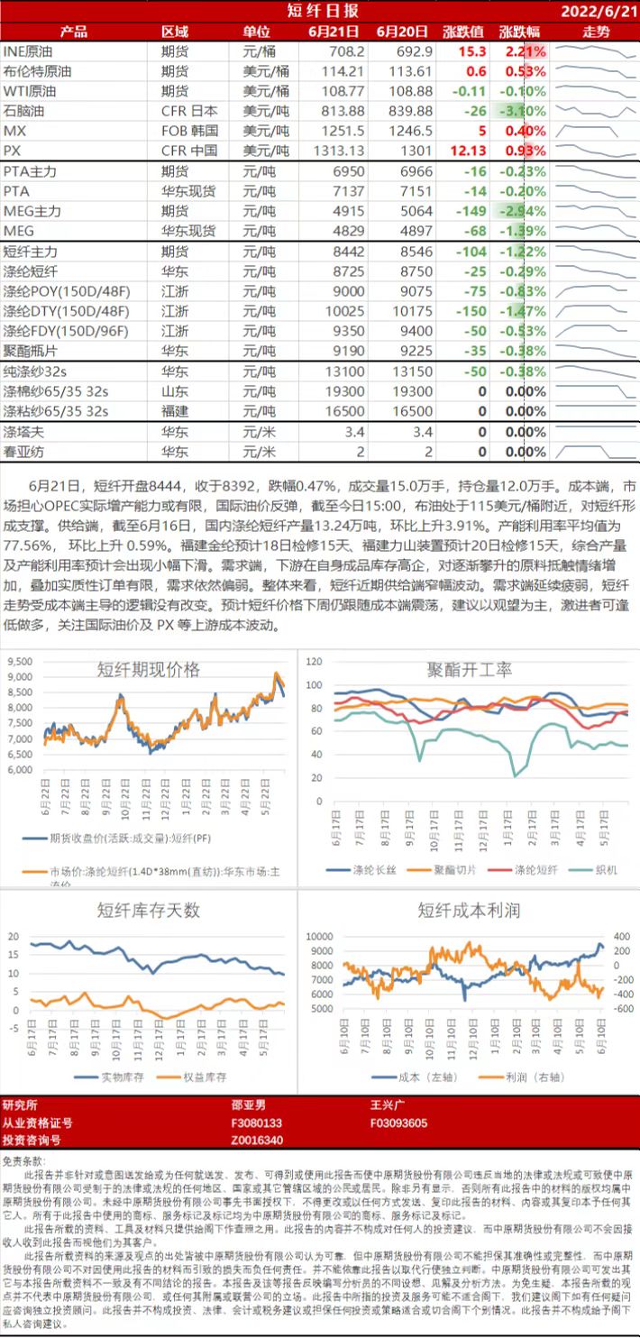短纤日报20220621