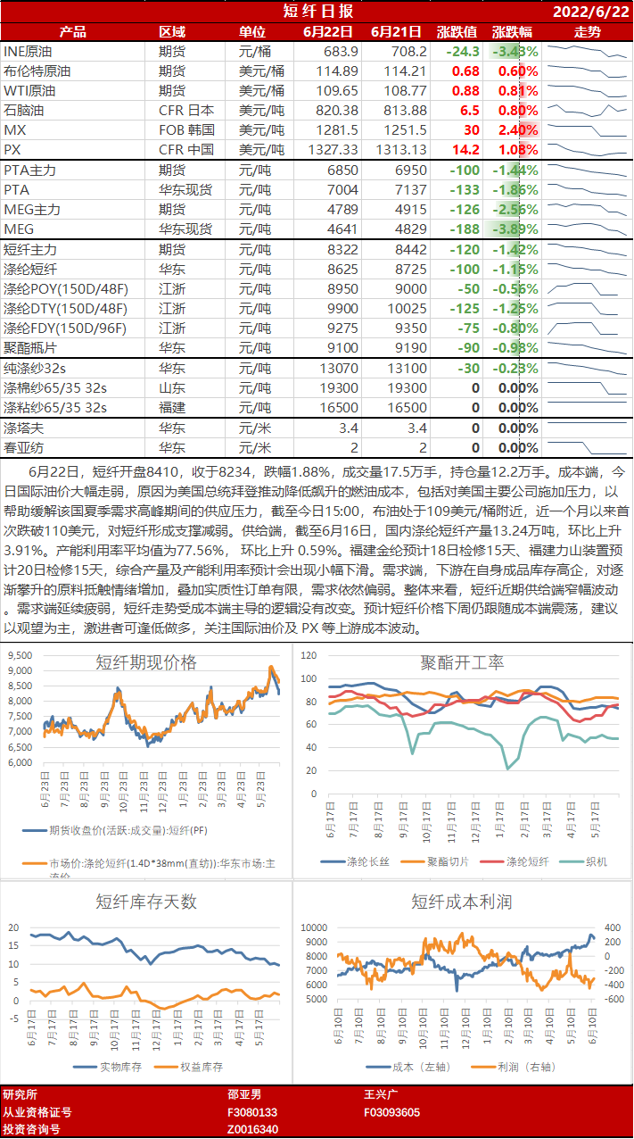 短纤日报20220622
