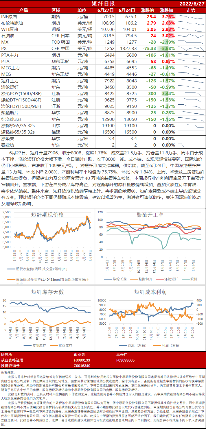短纤日报20220627