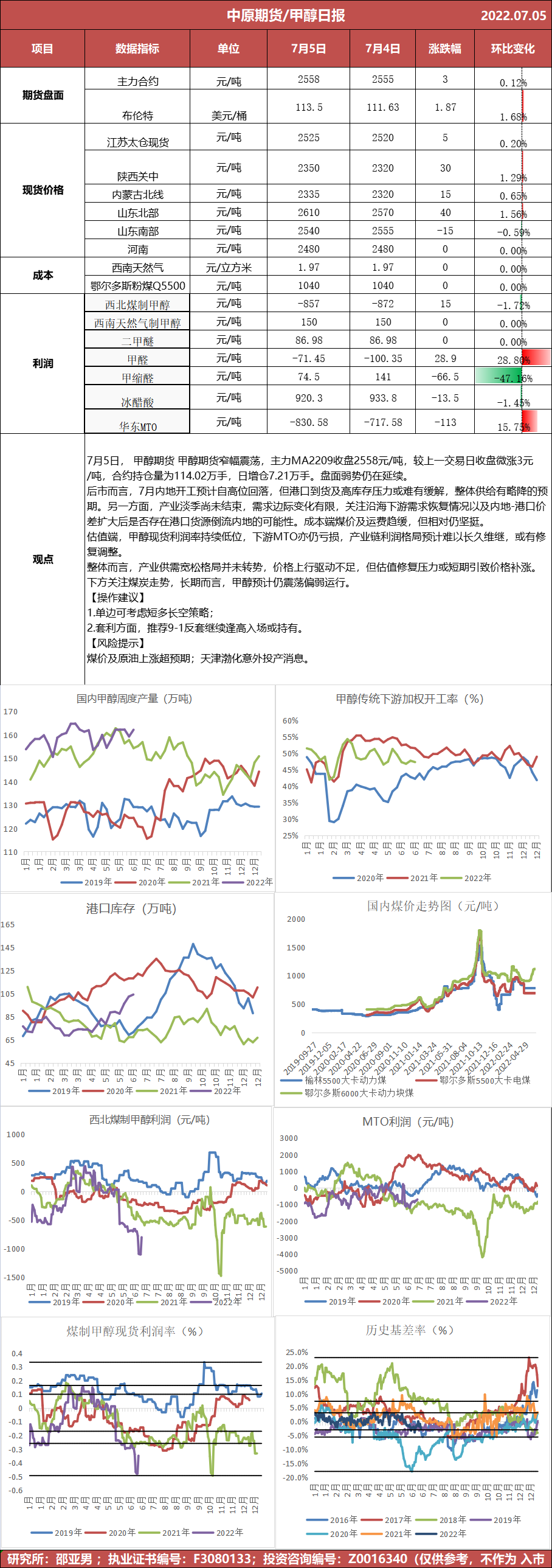 甲醇日报20220705