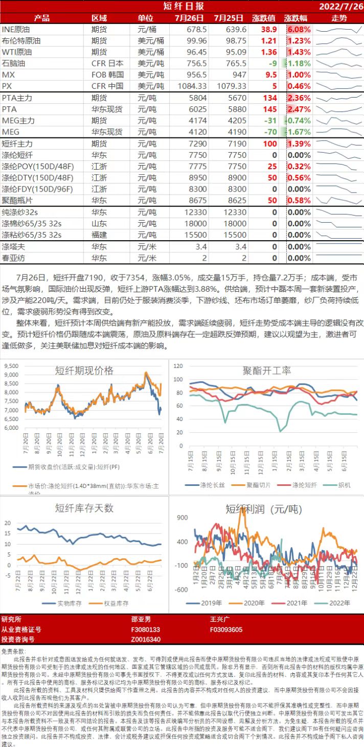 短纤日报20220726