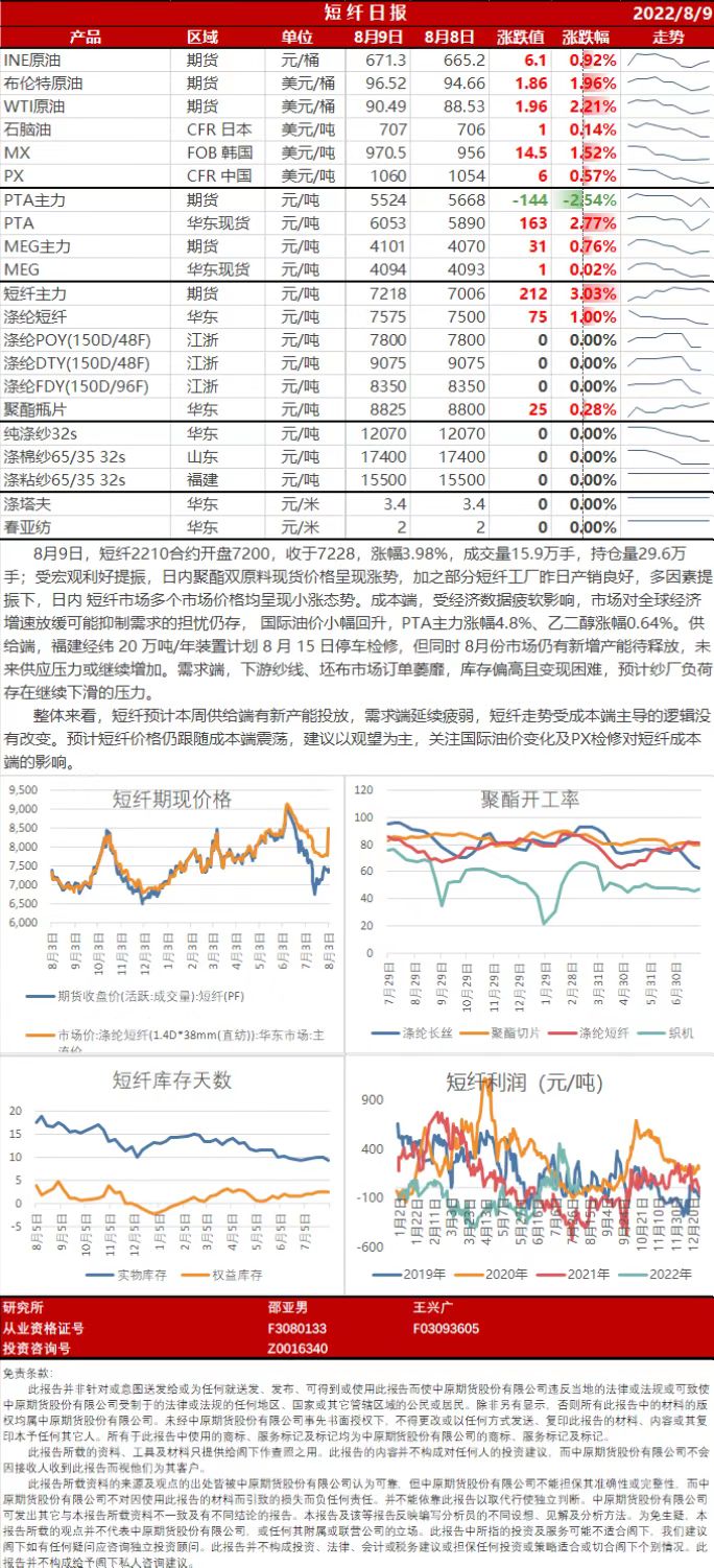 短纤日报20220809