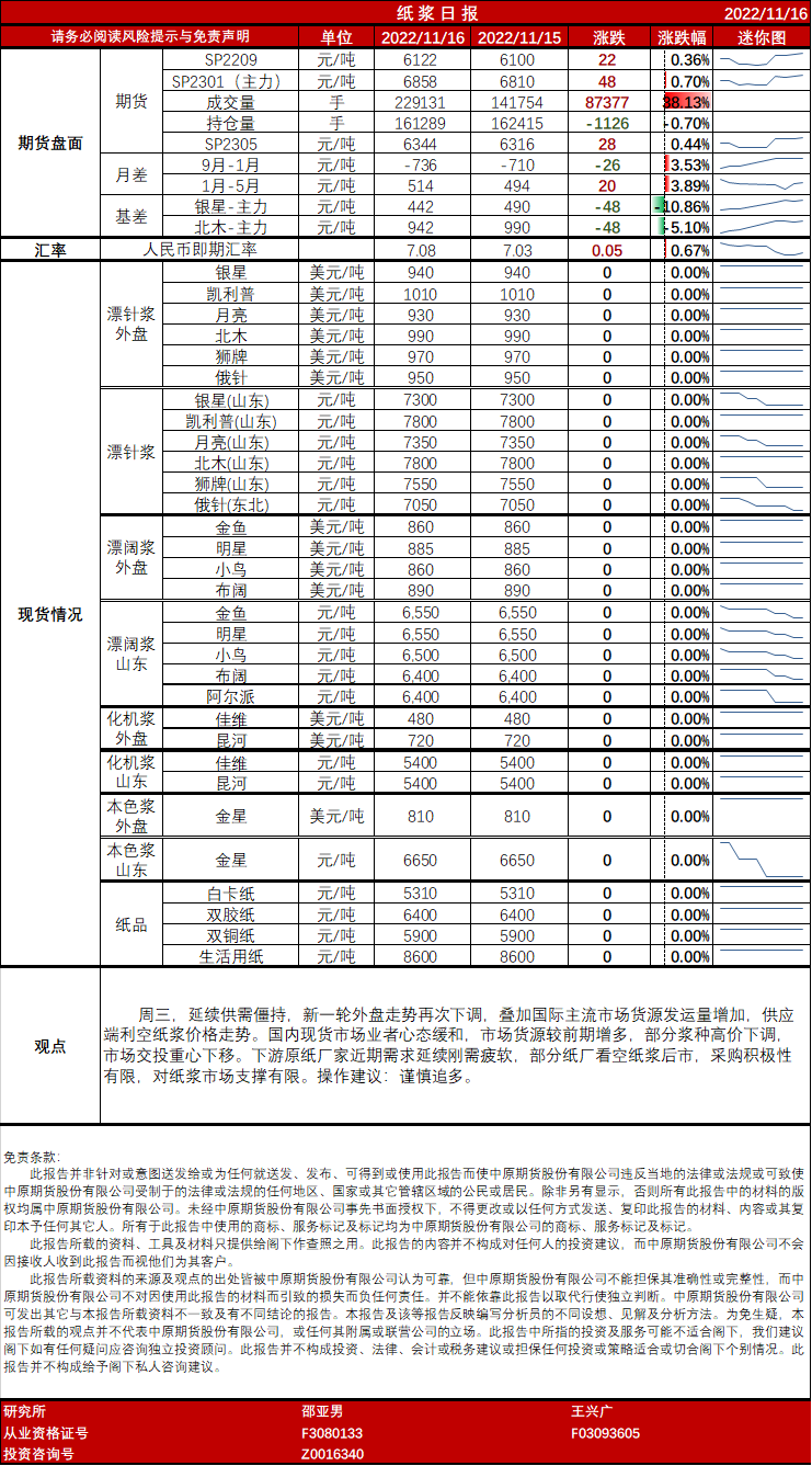 纸浆日报20221116