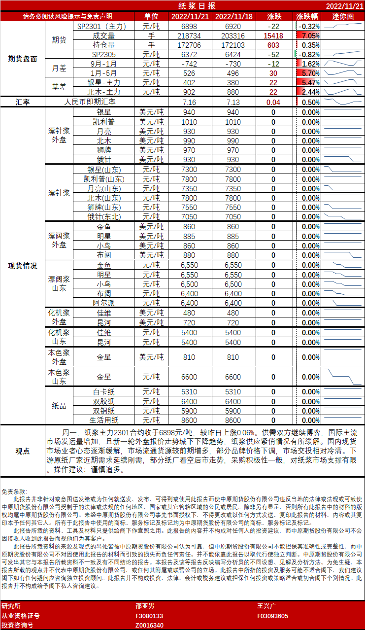 纸浆日报20221121