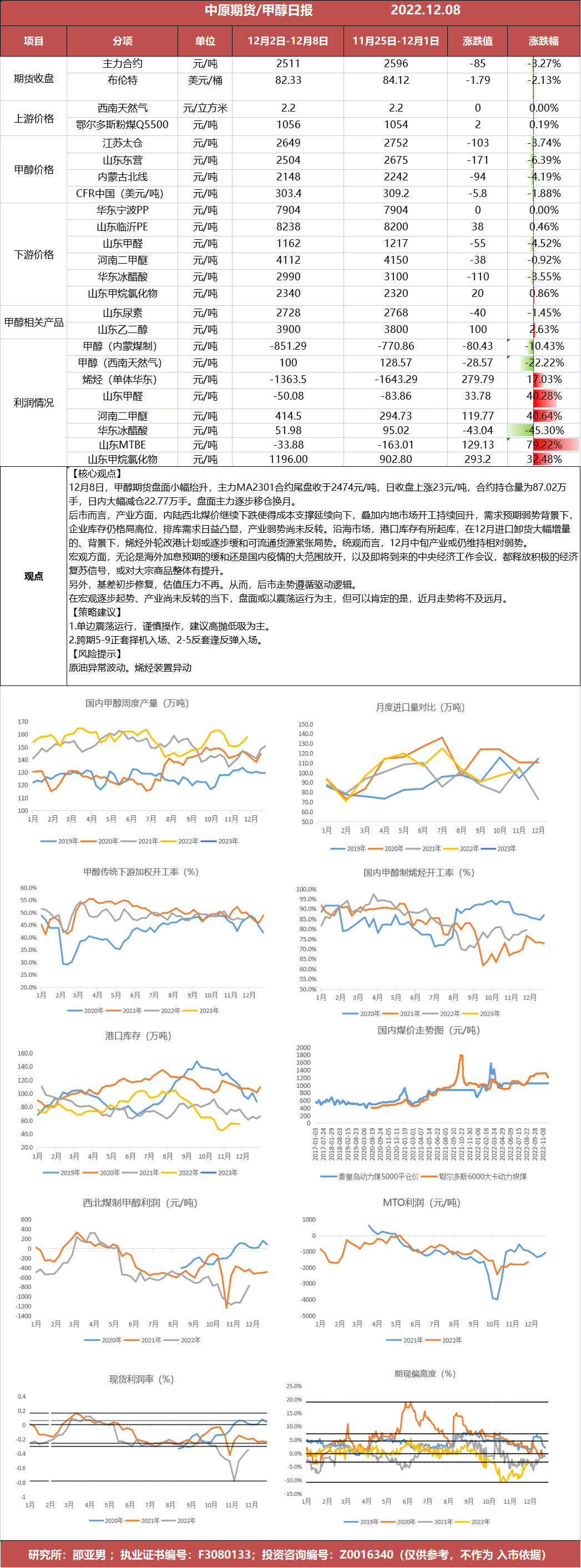 甲醇日报20221208