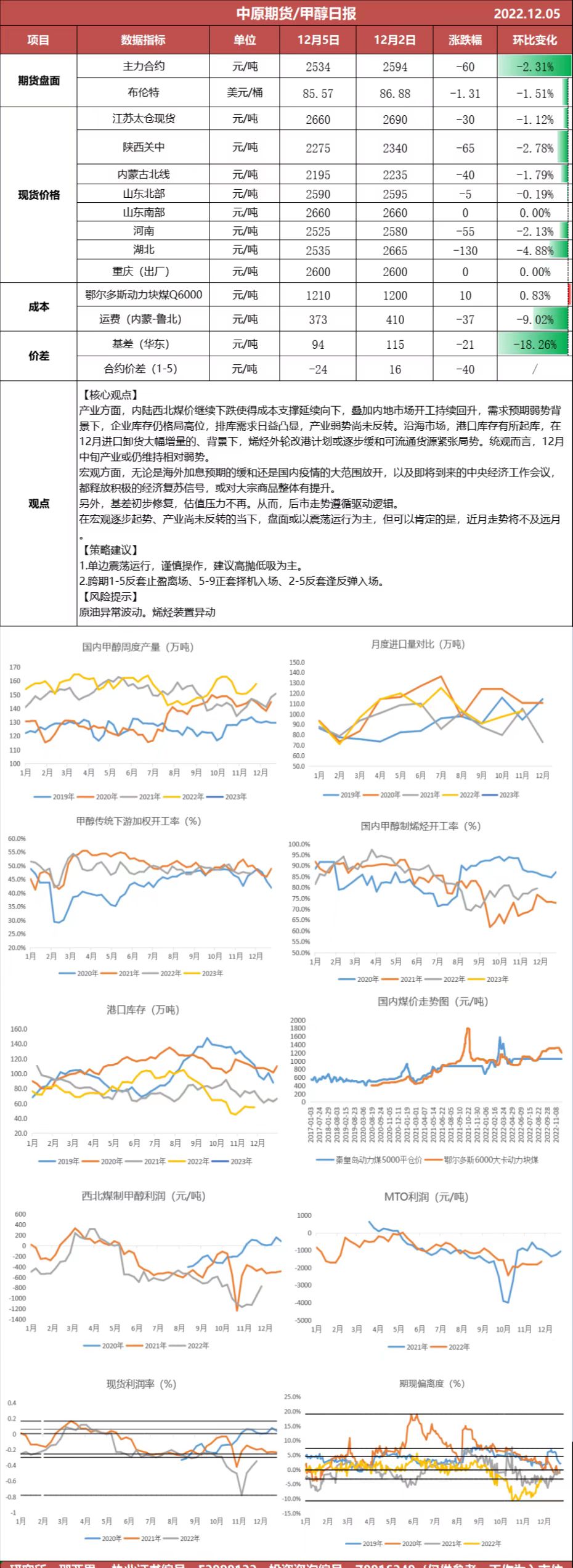 甲醇日报20221205
