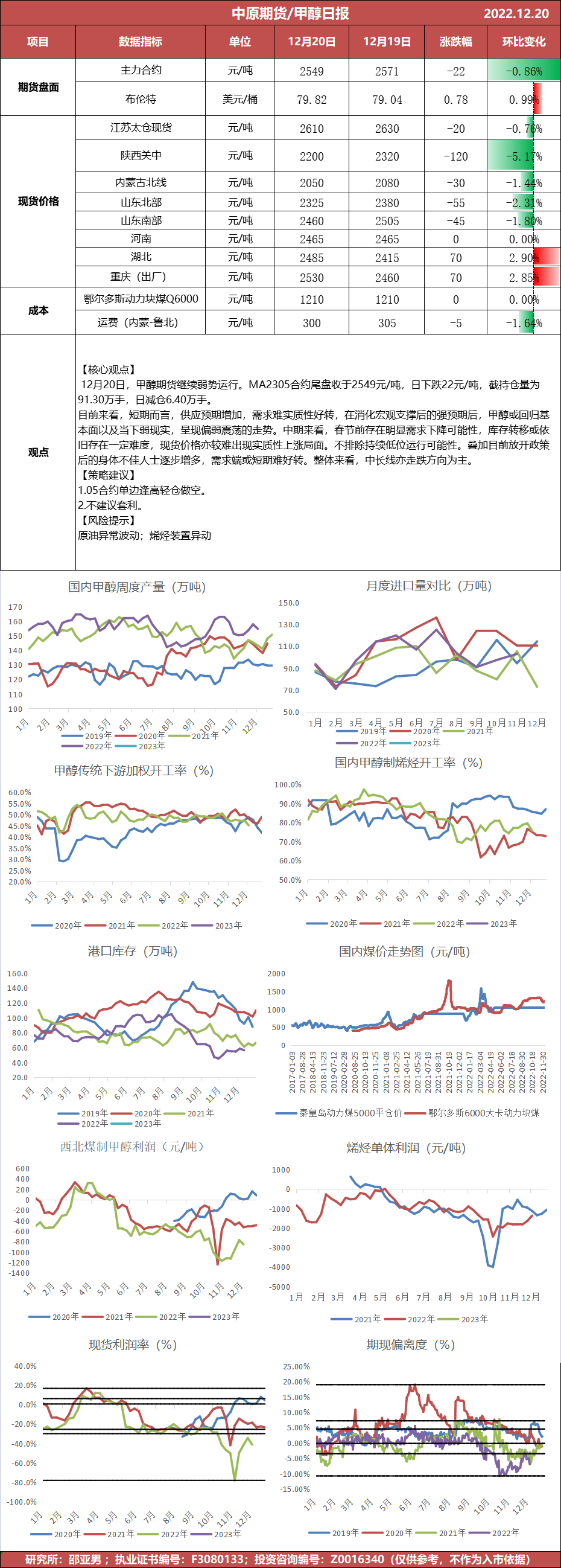 甲醇日报20221220