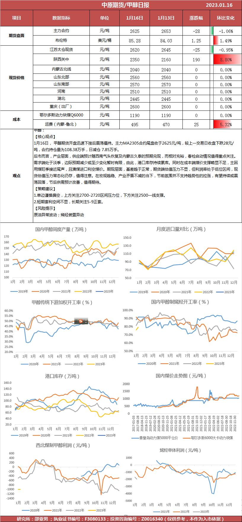甲醇日报20230116