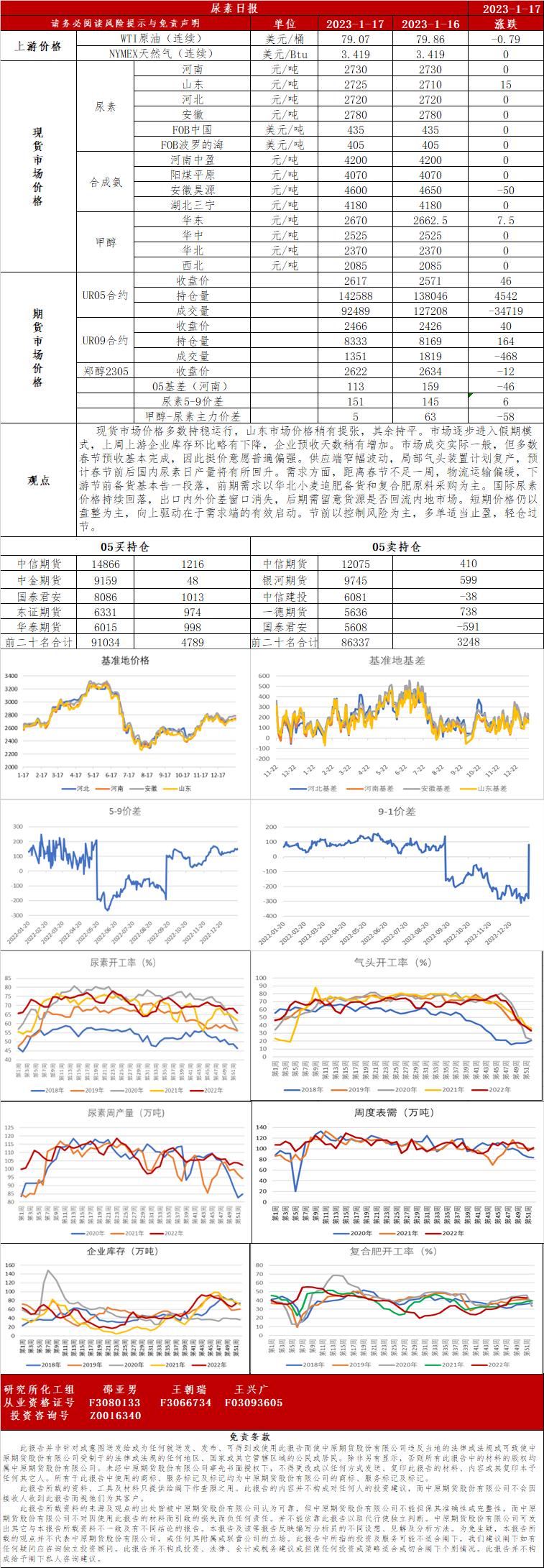 尿素日报20230117