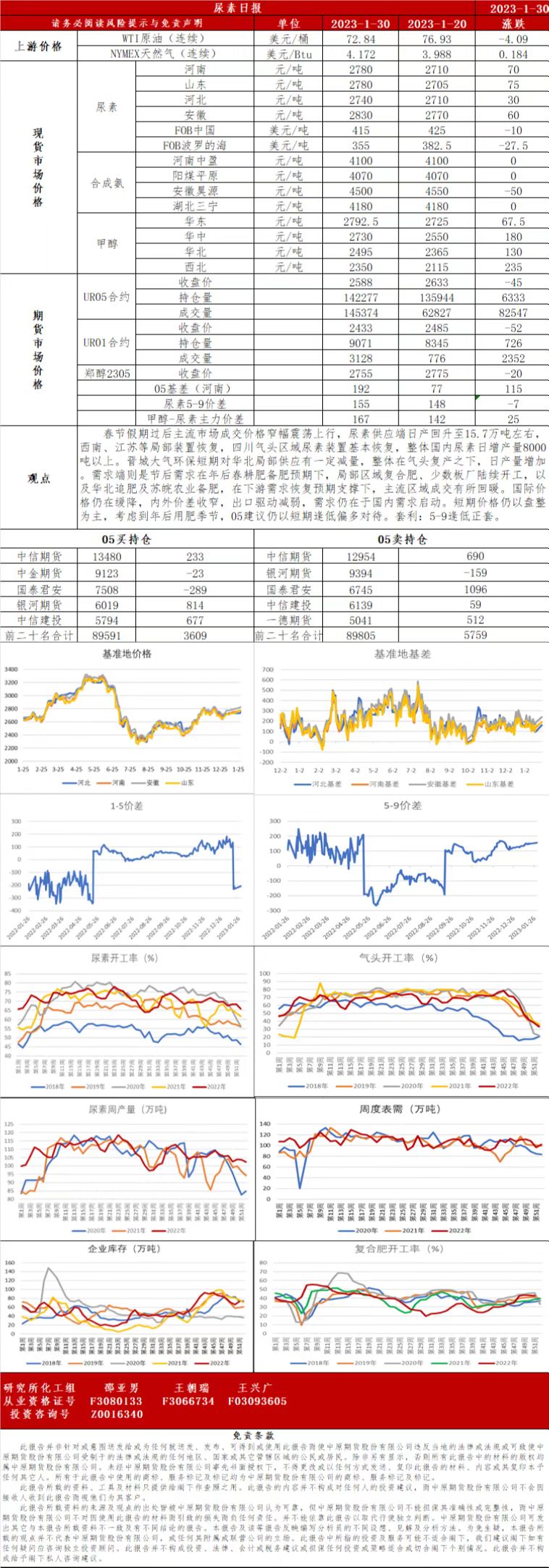 尿素日报20230130
