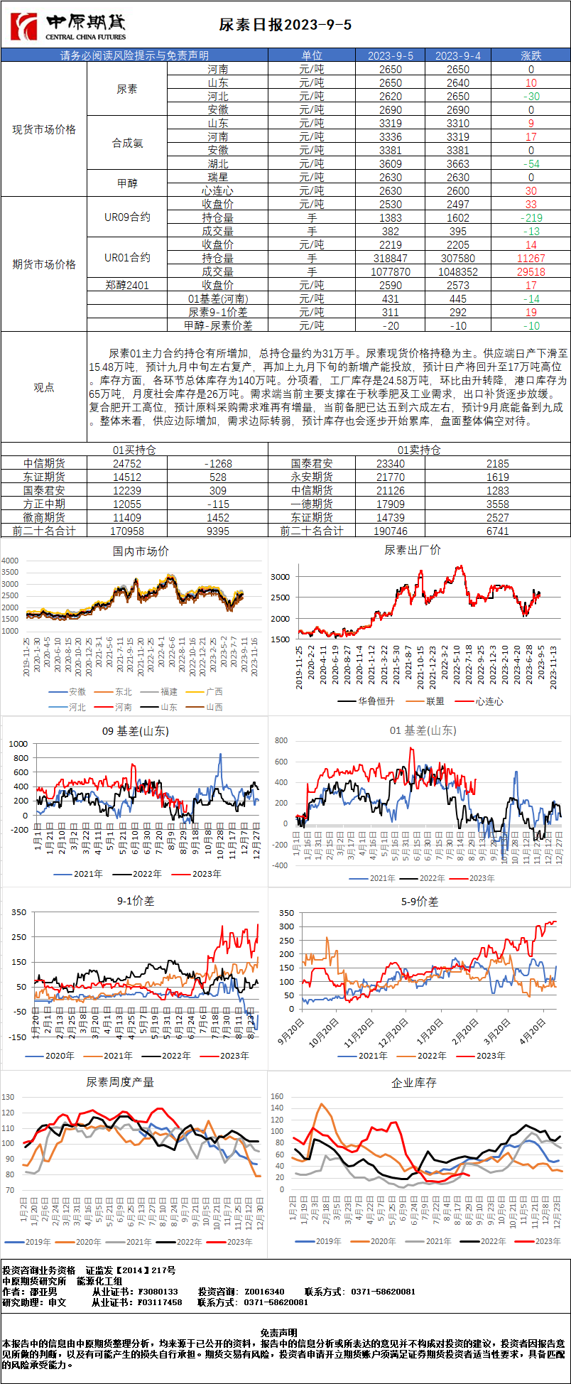 尿素日报20230905