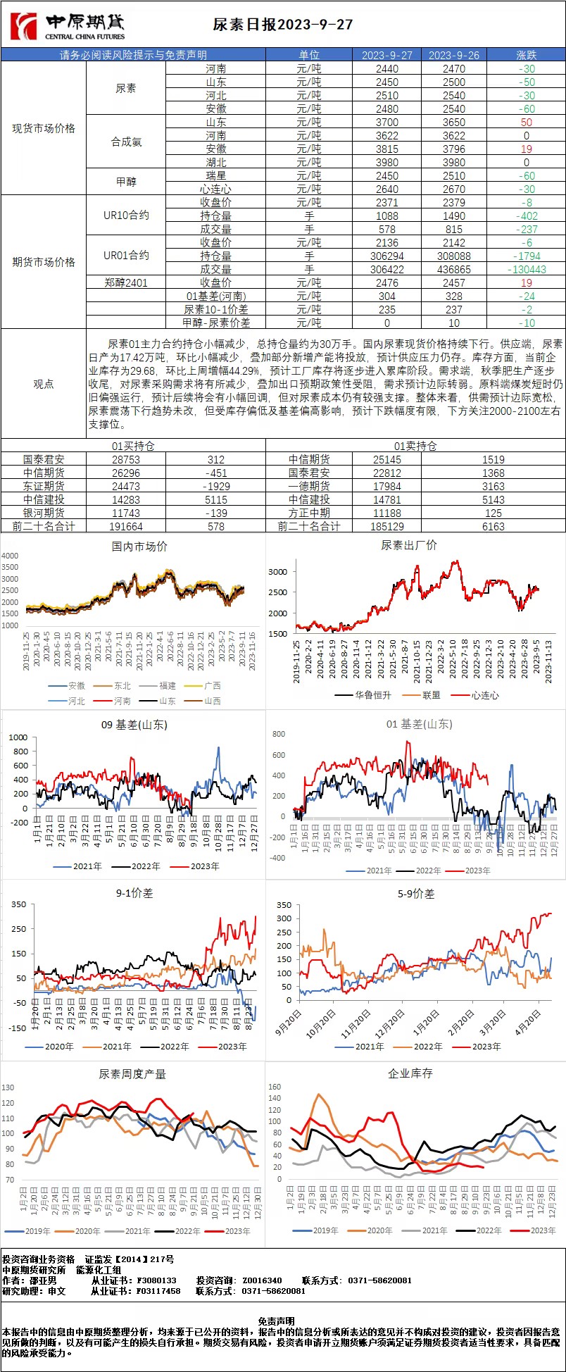 尿素日报20230927