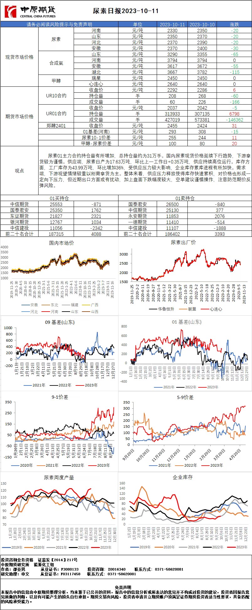 尿素日报20231011