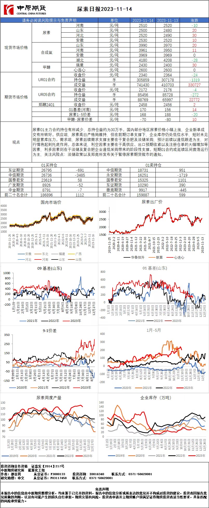 尿素日报20231114