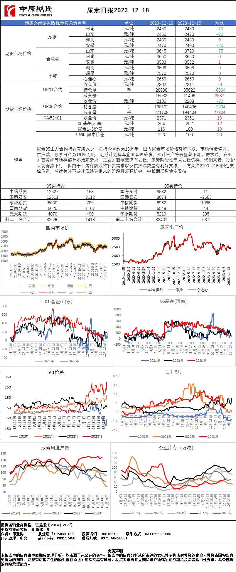 尿素日报20231219