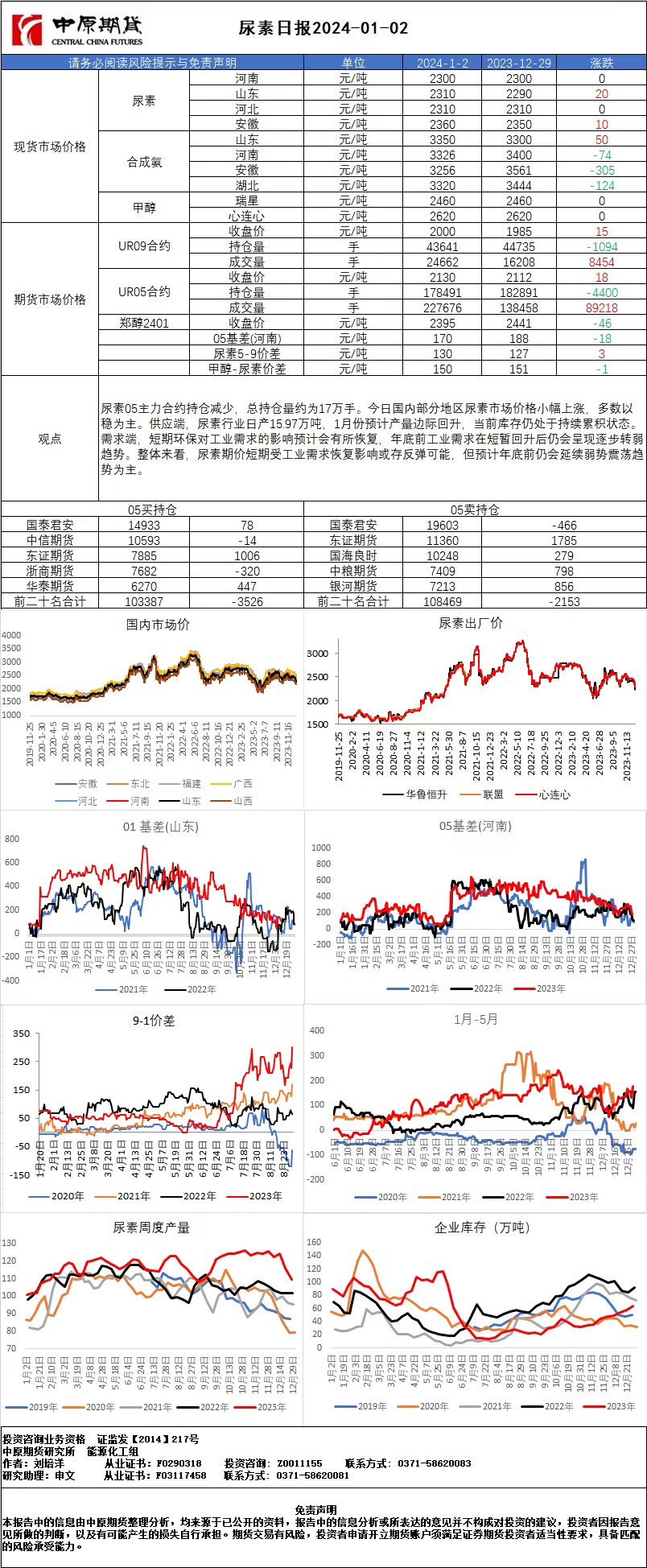 尿素日报20240102