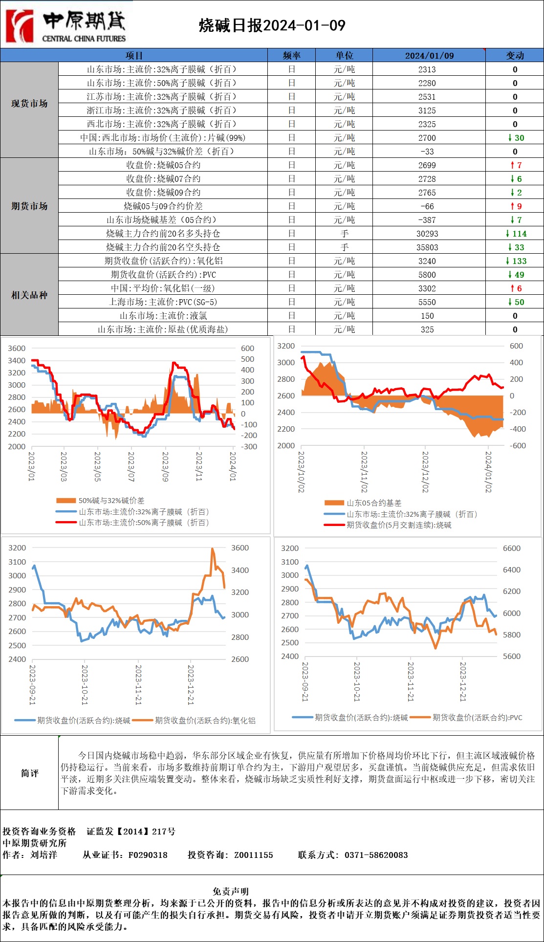 烧碱日报20240109
