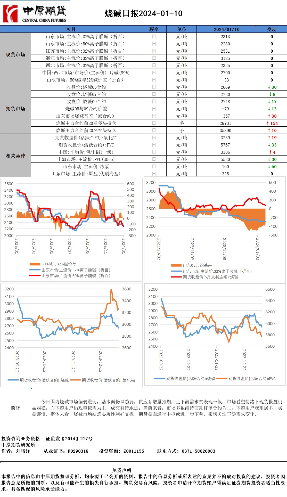 烧碱日报20240110