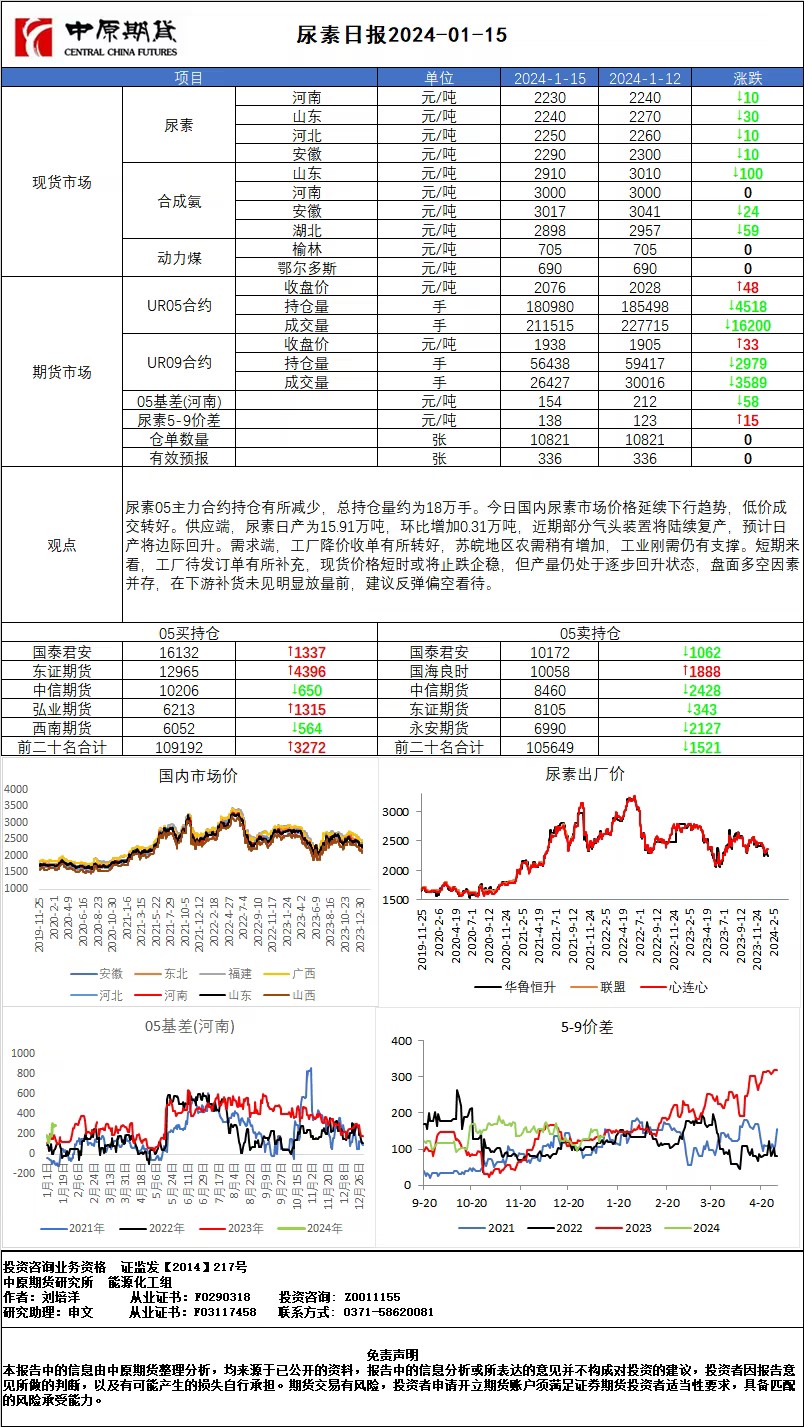 尿素日报20240115