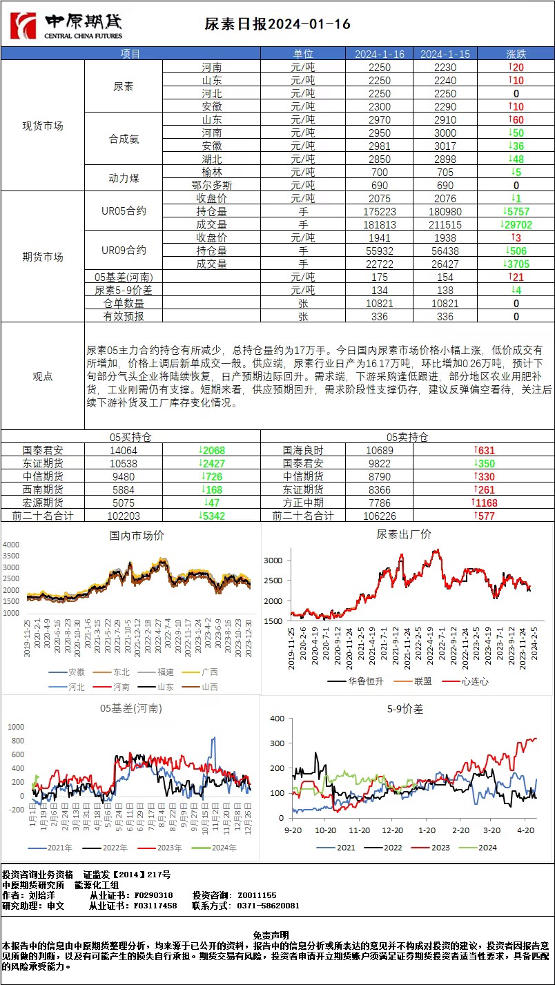 尿素日报20240116