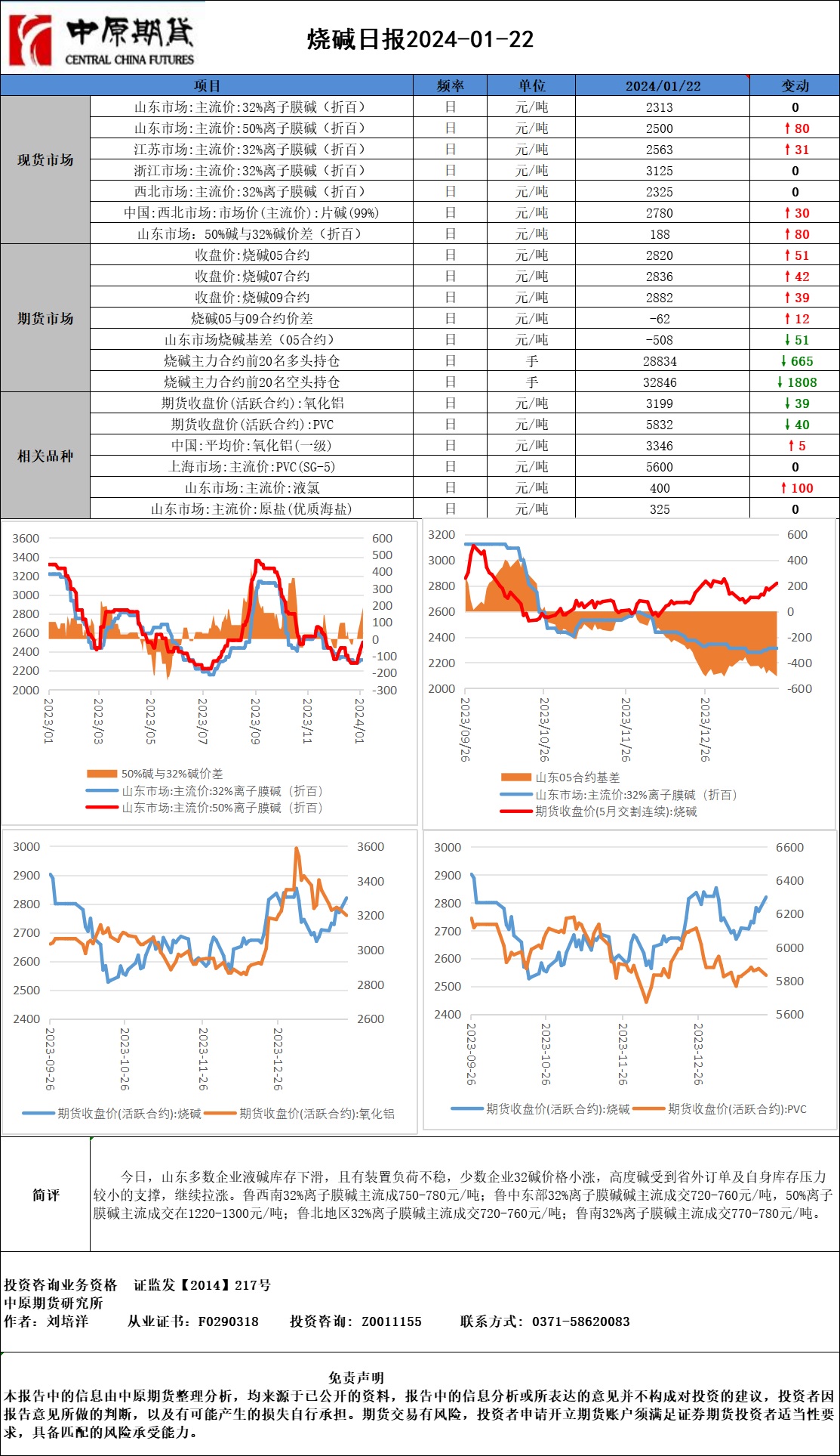 烧碱日报20240122