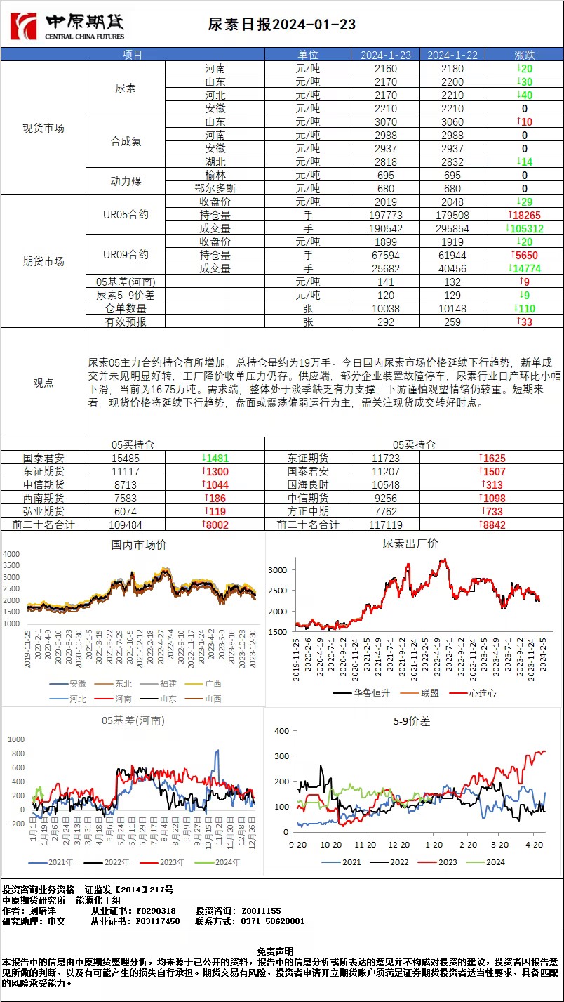 尿素日报20240123