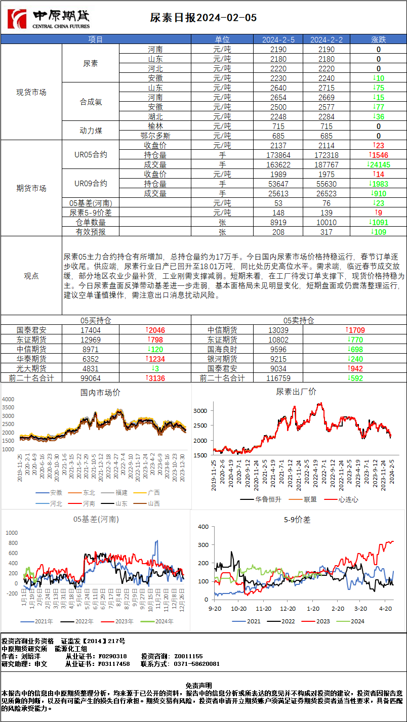 尿素日报20240205