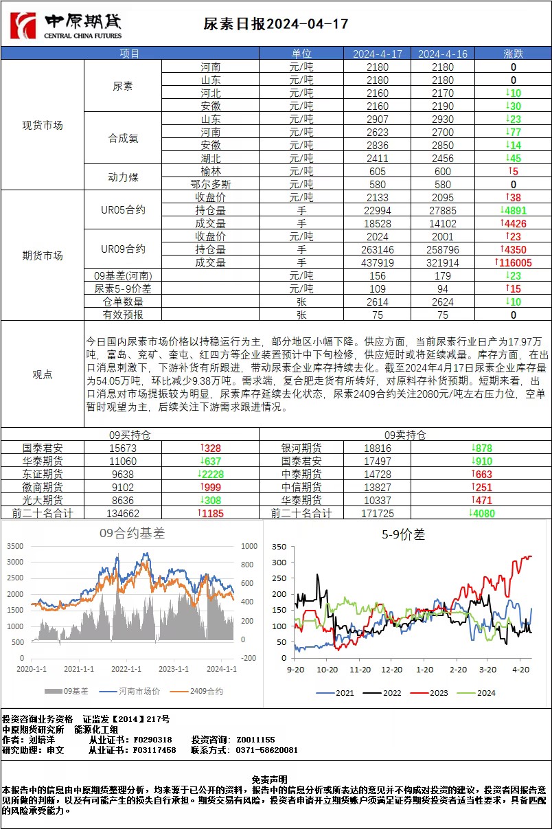 尿素日报20240417