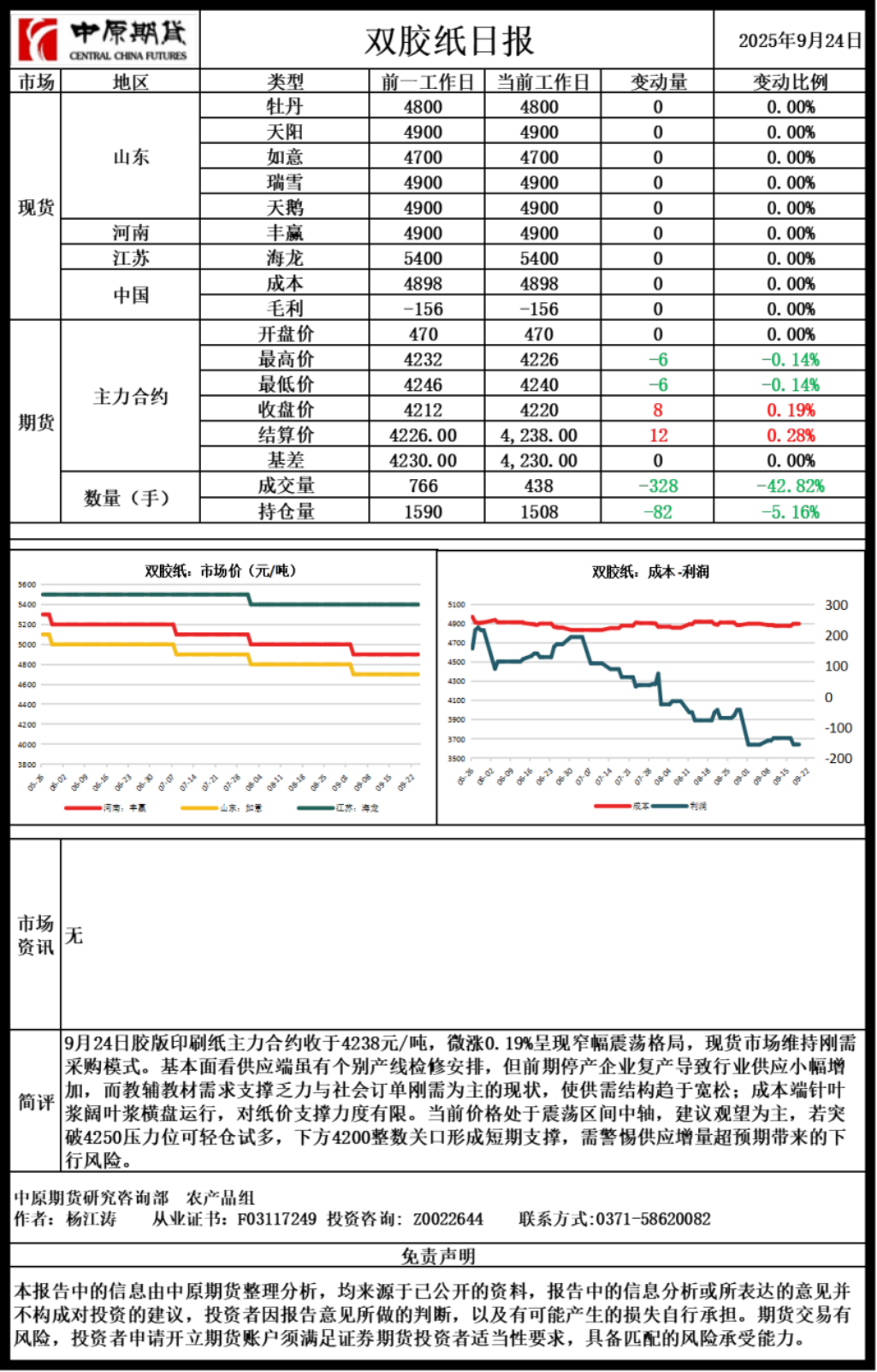 双胶纸日报20250924