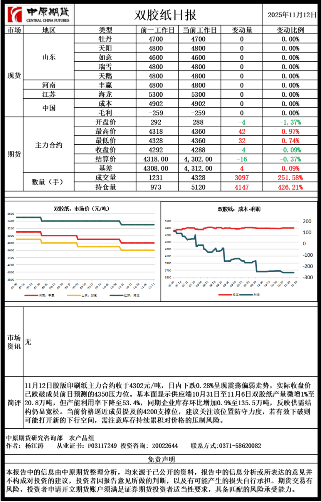 双胶纸日报20251112