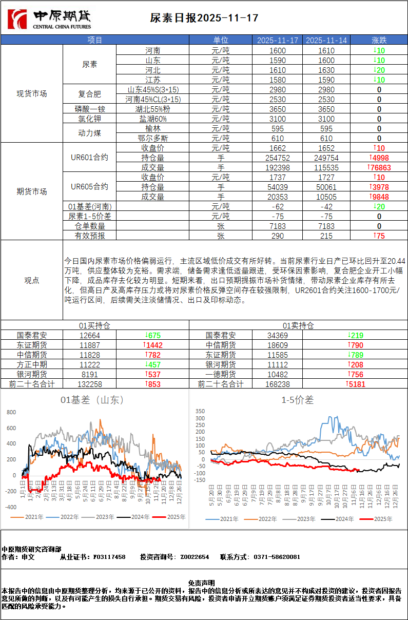 尿素日报20251117