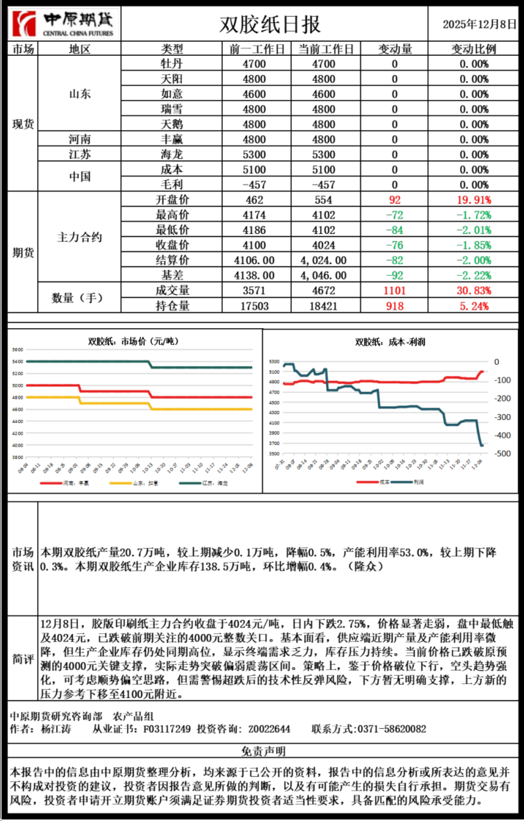 双胶纸日报20251208