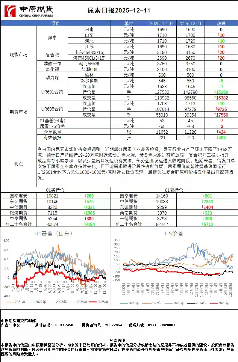 尿素日报20251211