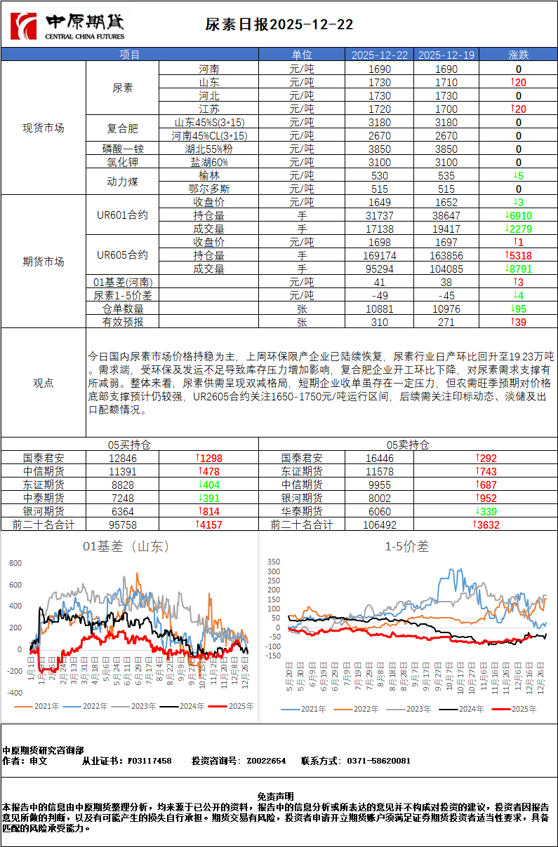 尿素日报20251222